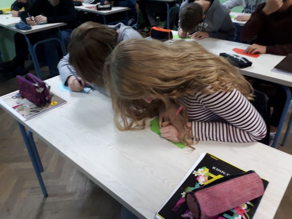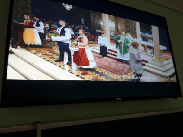 Pogledali su snimku prinosa darova sa mise zahvalnice, a zadatak im je bio napisati na papiru svoju zahvalu Bogu koju su postavili na pano u razredu