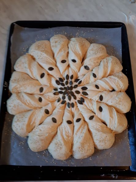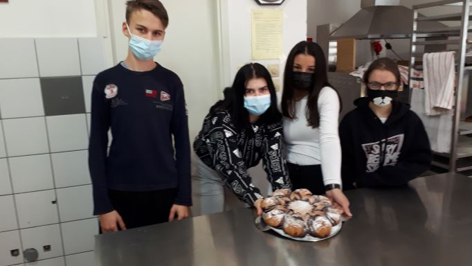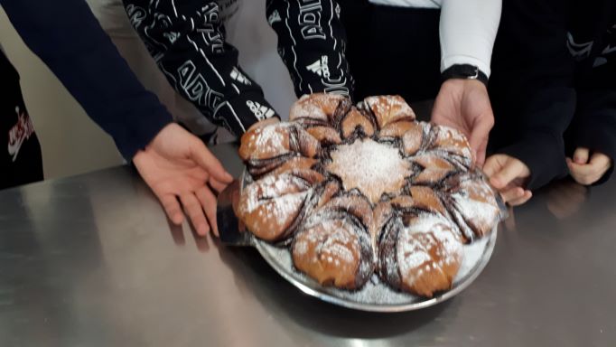 Na praktičnoj nastavi pekari 2. godine izradili su lisnatu pogaču s bučinim sjemenkama i zvijezda kruh s nutelom i pokazali svoje vještine u izradi i uživali degustirajući svoje proizvode.