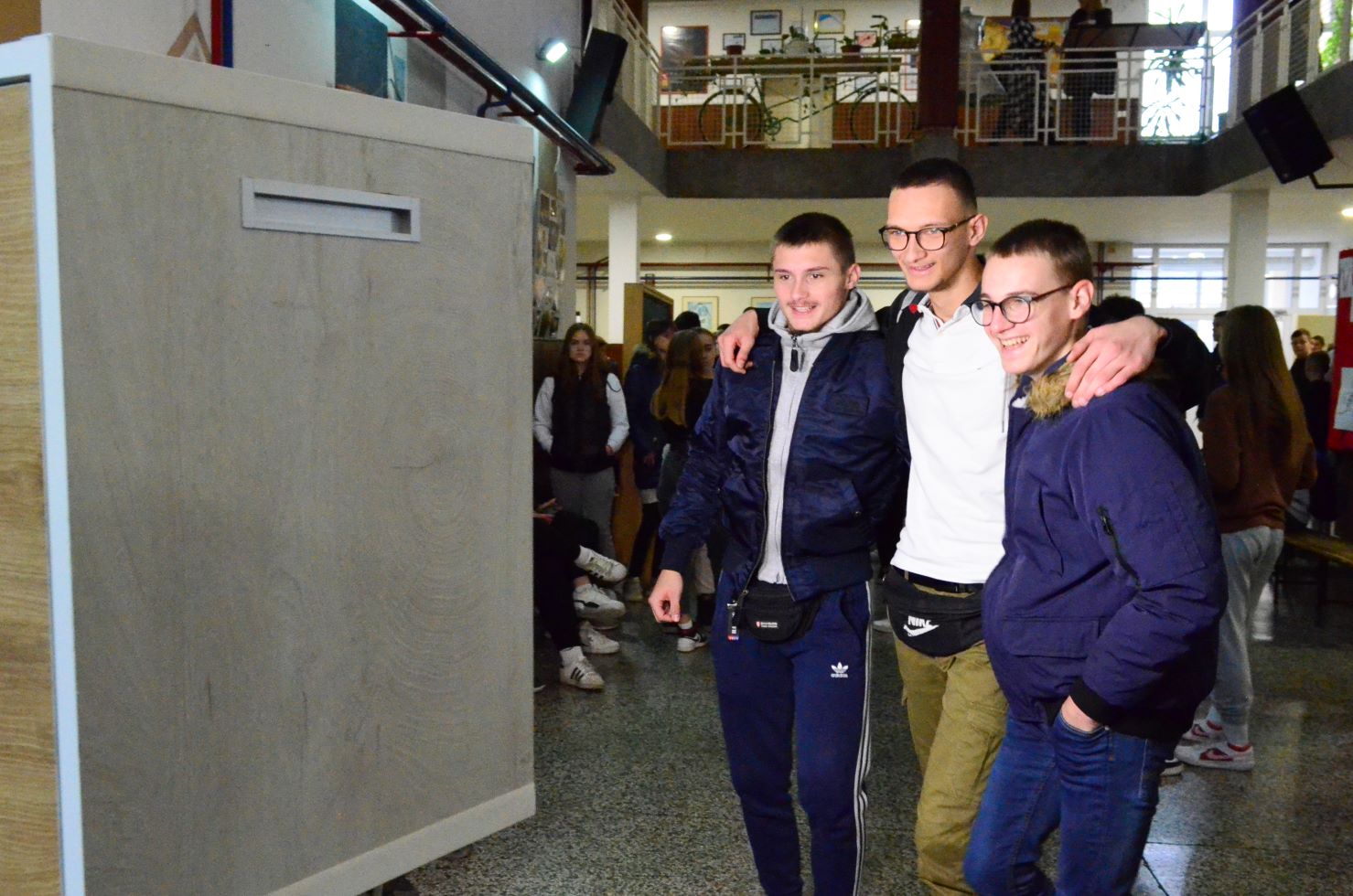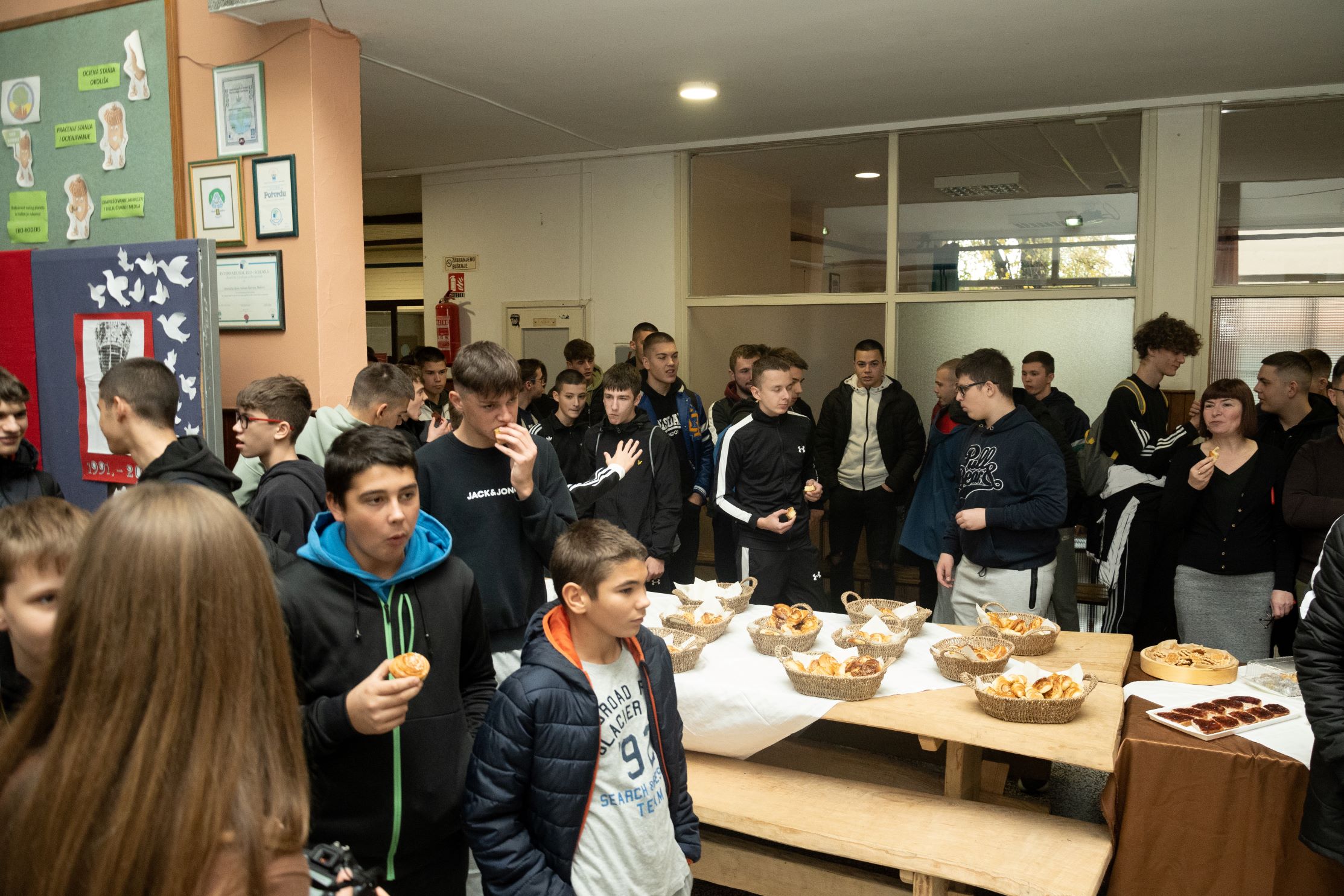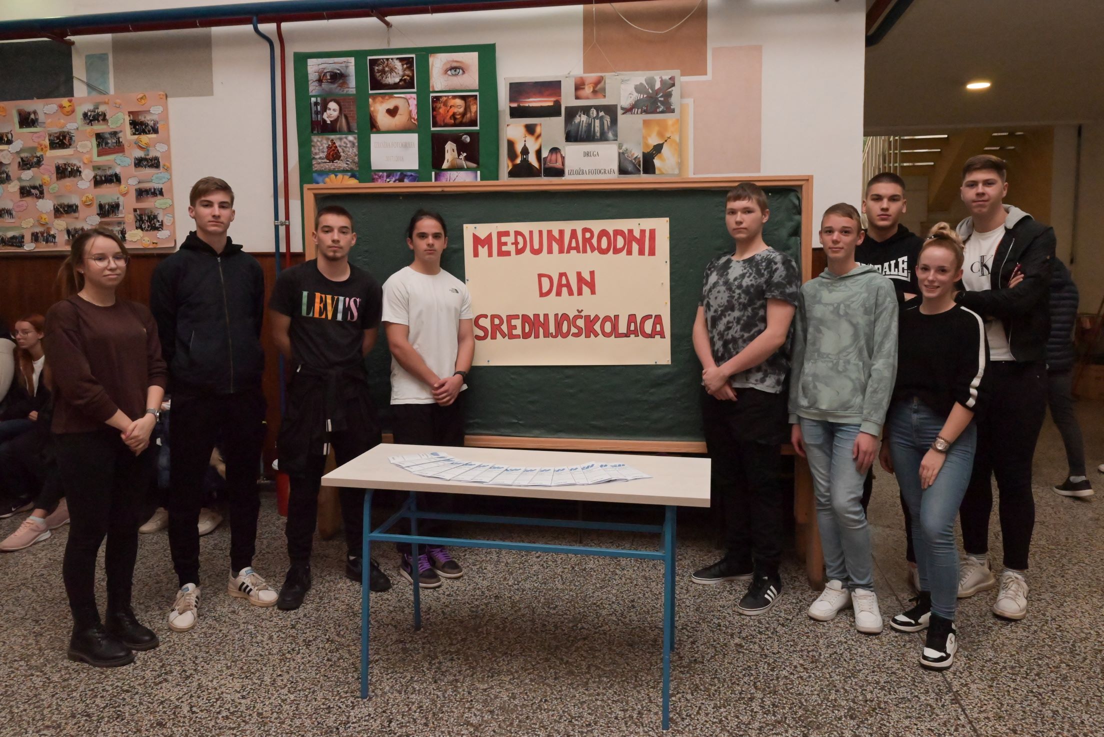 U petak, 17. studenog 2023. godine, u našoj je Školi po prvi puta obilježen Međunarodni dan srednjoškolaca. Taj se dan, tijekom velikoga odmora, za sve učenike i nastavnike organizirao prigodan program u holu škole. U holu su bila postavljena tri štanda na kojima se predstavilo naše Vijeće učenika i Učenička zadruga s raznim proizvodima. Također, naš je tamburaški sastav odsvirao nekoliko pjesama uz koje su se učenici družili i degustirali školske proizvode. Predsjednik Vijeća učenika Jan Juroš (3.TR) pozdravio je sve prisutne i čestitao srednjoškolcima njihov dan. U sjajnoj atmosferi učenici i nastavnici zaplesali su i kolo. Sve ovo zabilježili su naši vrijedni fotografi i novinarska skupina.