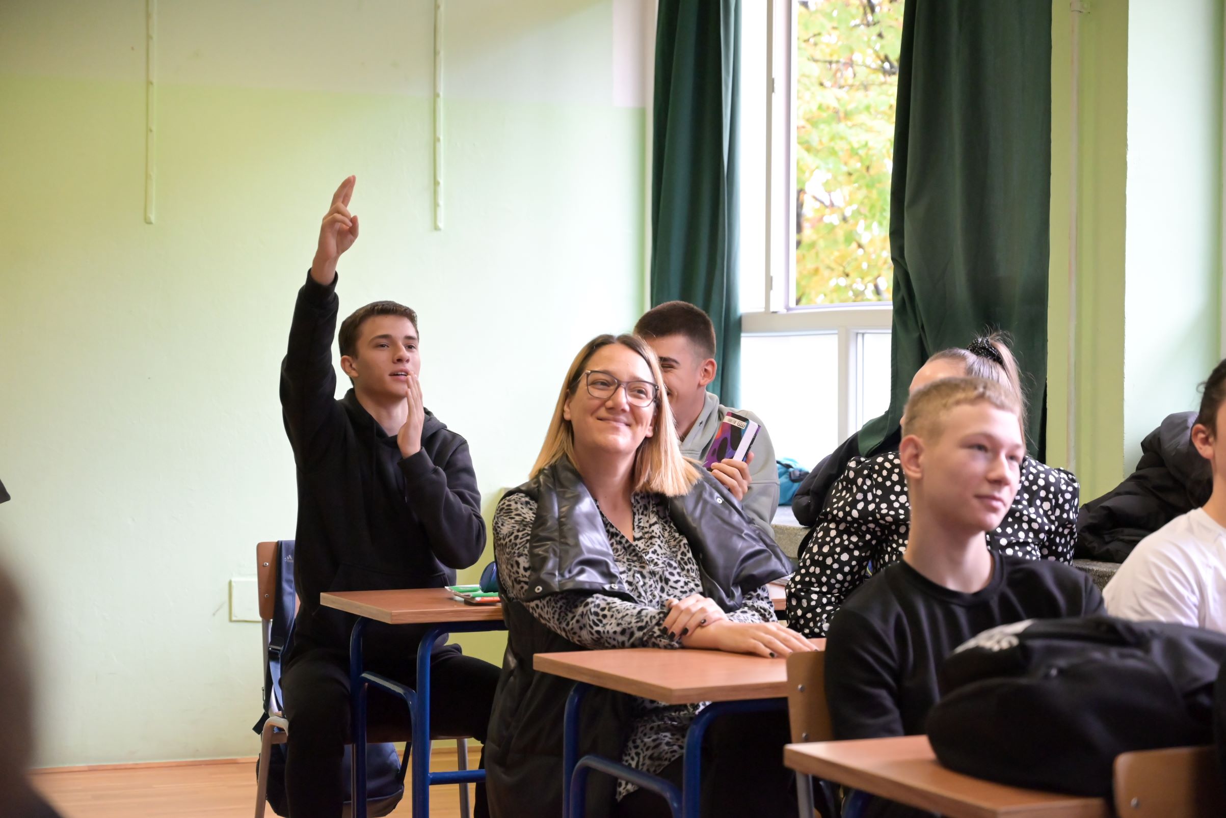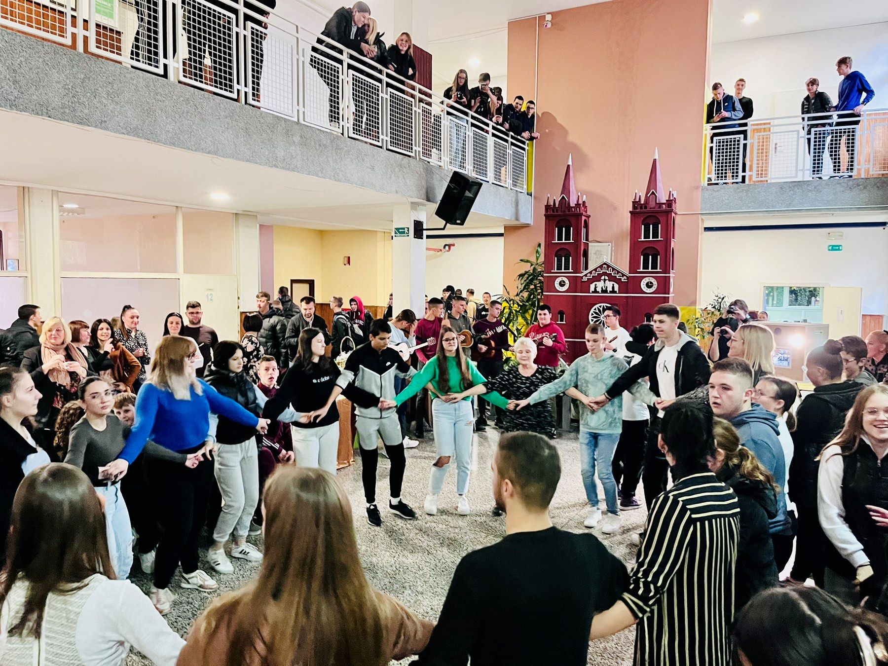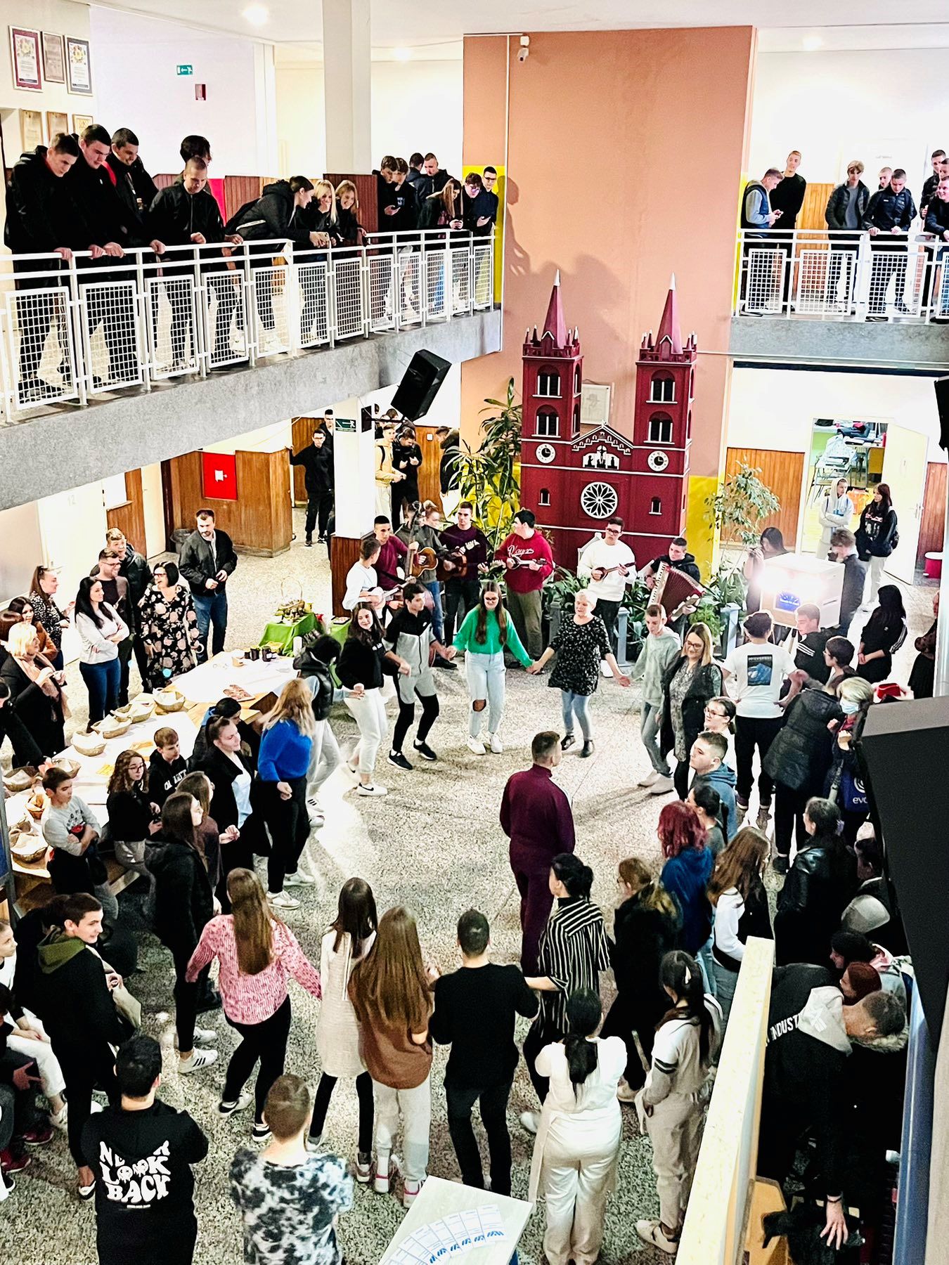 U petak, 17. studenog 2023. godine, u našoj je Školi po prvi puta obilježen Međunarodni dan srednjoškolaca. Taj se dan, tijekom velikoga odmora, za sve učenike i nastavnike organizirao prigodan program u holu škole. U holu su bila postavljena tri štanda na kojima se predstavilo naše Vijeće učenika i Učenička zadruga s raznim proizvodima. Također, naš je tamburaški sastav odsvirao nekoliko pjesama uz koje su se učenici družili i degustirali školske proizvode. Predsjednik Vijeća učenika Jan Juroš (3.TR) pozdravio je sve prisutne i čestitao srednjoškolcima njihov dan. U sjajnoj atmosferi učenici i nastavnici zaplesali su i kolo. Sve ovo zabilježili su naši vrijedni fotografi i novinarska skupina.