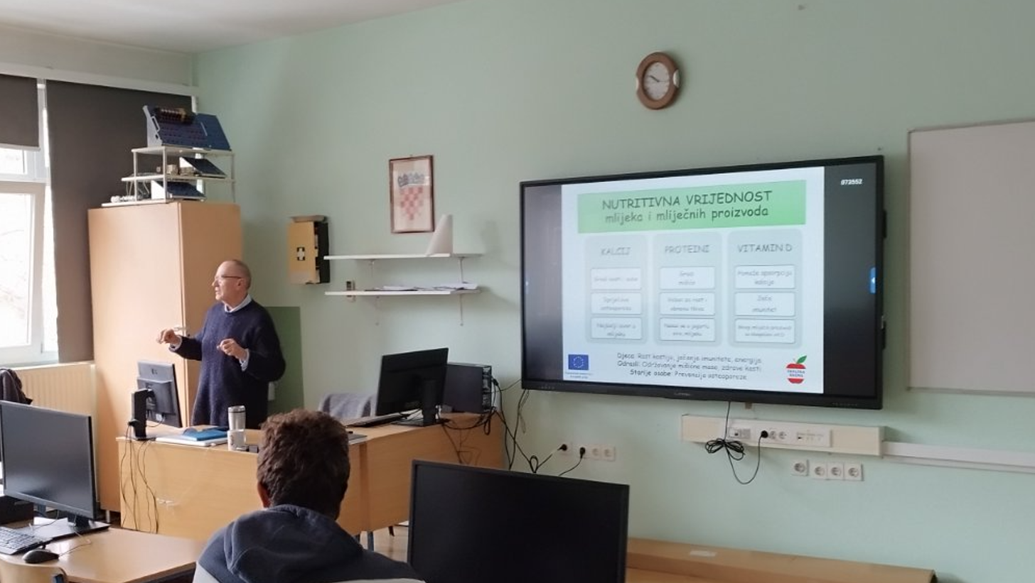 U srijedu, 22. siječnja 2025. godine, predstavnik DMD Naturalis d.o.o. održao je predavanje za tridesetak naših učenika 3. C/F/M i 3. K/SL razrednog odjela u sklopu provedbe pratećih mjera Školske sheme.