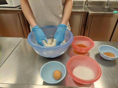 Jaja miksati sa šećerom 3 do 4 minute, dodati rastopljeni maslac i kratko izmiksati. Zatim dodati brašno, prašak za pecivo i sol. Ujednačiti tijesto rukama i ostaviti ga 2 sata da odstoji na sobnoj temperaturi.