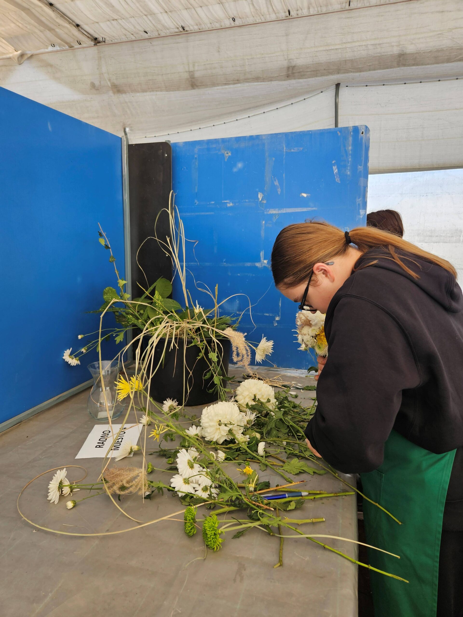 Zadatak je bio izraditi buket slobodnog stila. Učenici su na raspolaganju imali pripremljeni biljni materijal, alat i dovoljno vremena, a njihova kreativnost i vještina izrade rezultirale su lijepim buketima. Najviše bodova ostvarila je učenica Lana Zlatunić koju očekuje izlučno Međužupanijsko natjecanje. Čestitke svim učenicama na sudjelovanju i lijepim radovima.
