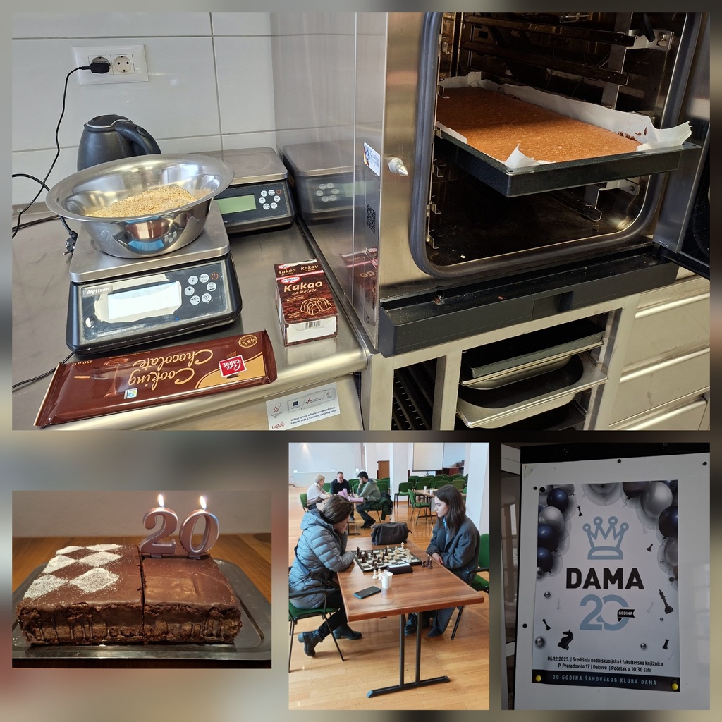 ŠK Dama iz Đakova proslavio je 20. rođendan, uz prigodan program u Središnjoj nadbiskupijskoj i fakultetskoj knjižnici, s nekoliko partija šaha i uz čokoladnu tortu koju su naši gastro-kreativci vješto ispekli u subotu, 12. prosinca.