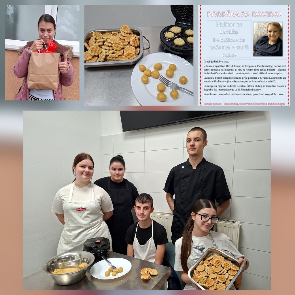 David Kocur iz Josipovca Punitovačkog treba pomoć jer se nalazi na liječenju u Zagrebu i treba pomoć. Naravno da su naši učenici odmah priskočili i ispekli punu vrećicu keksića koji će prodavati na sajmu u organizaciji Matice Slovačka Beketinci. Činimo male stvari s velikom ljubavlju, rekla je majka Tereza.