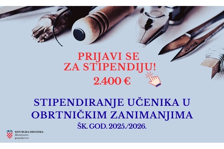Natječaj Ministarstva gospodarstva: „Stipendiranje učenika u obrtničkim zanimanjima“ za školsku godinu 2025./2026.