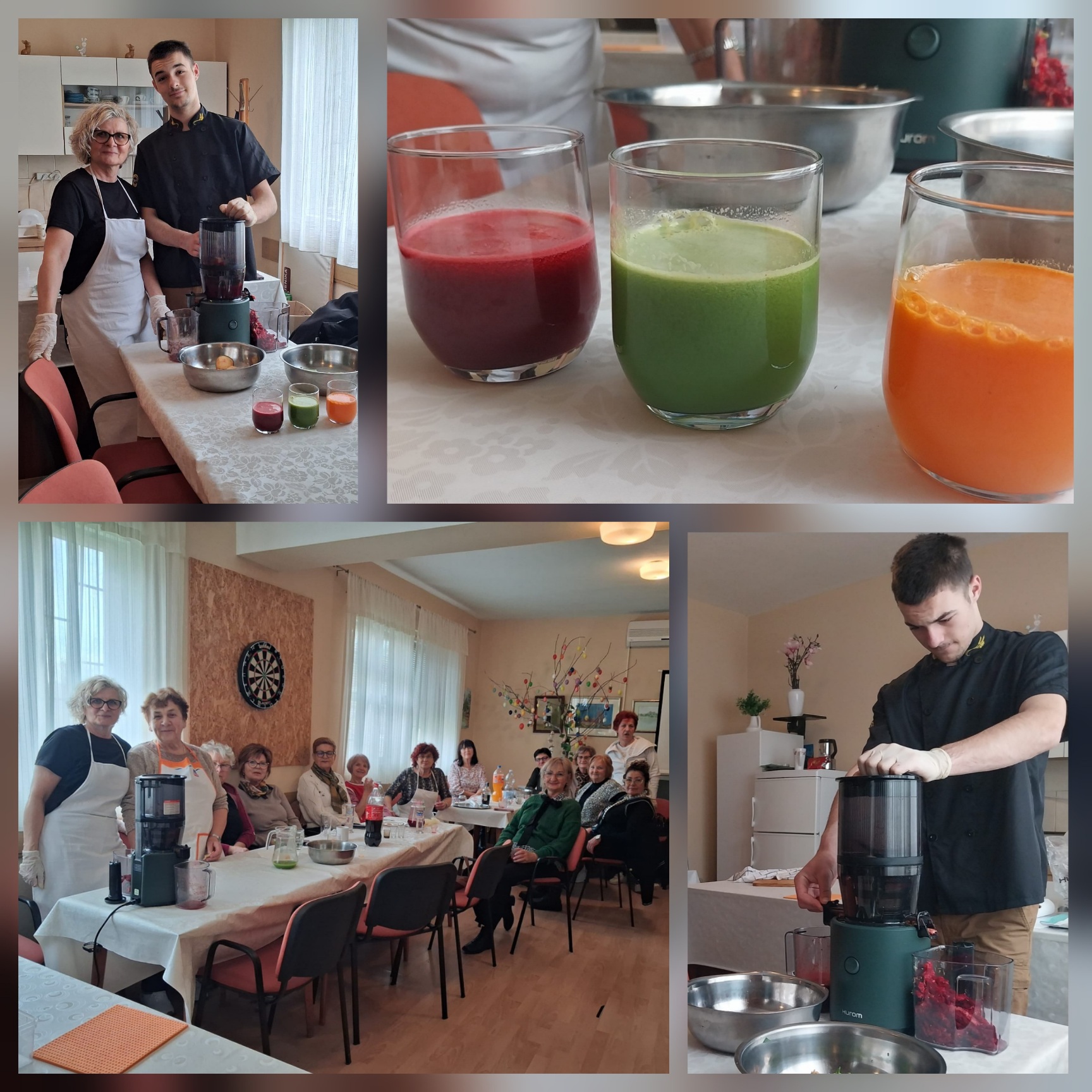 Učenici su s osobama starije životne dobi, kroz razmjenu iskustva i ugodno druženje, predstavili sokovnik i sokove kao dio svakodnevne zdrave prehrane, 18. ožujka 2026. godine u prostorijama Matice umirovljenika Đakovo. Prirodne boje soka te mirisi i okusi stvoreni su od jabuke, mrkve, blitve, cikle i naranče. Članice Matice umirovljenika su sa oduševljenjem prihvatile našu ideju kreiranja multivitaminskih sokova.