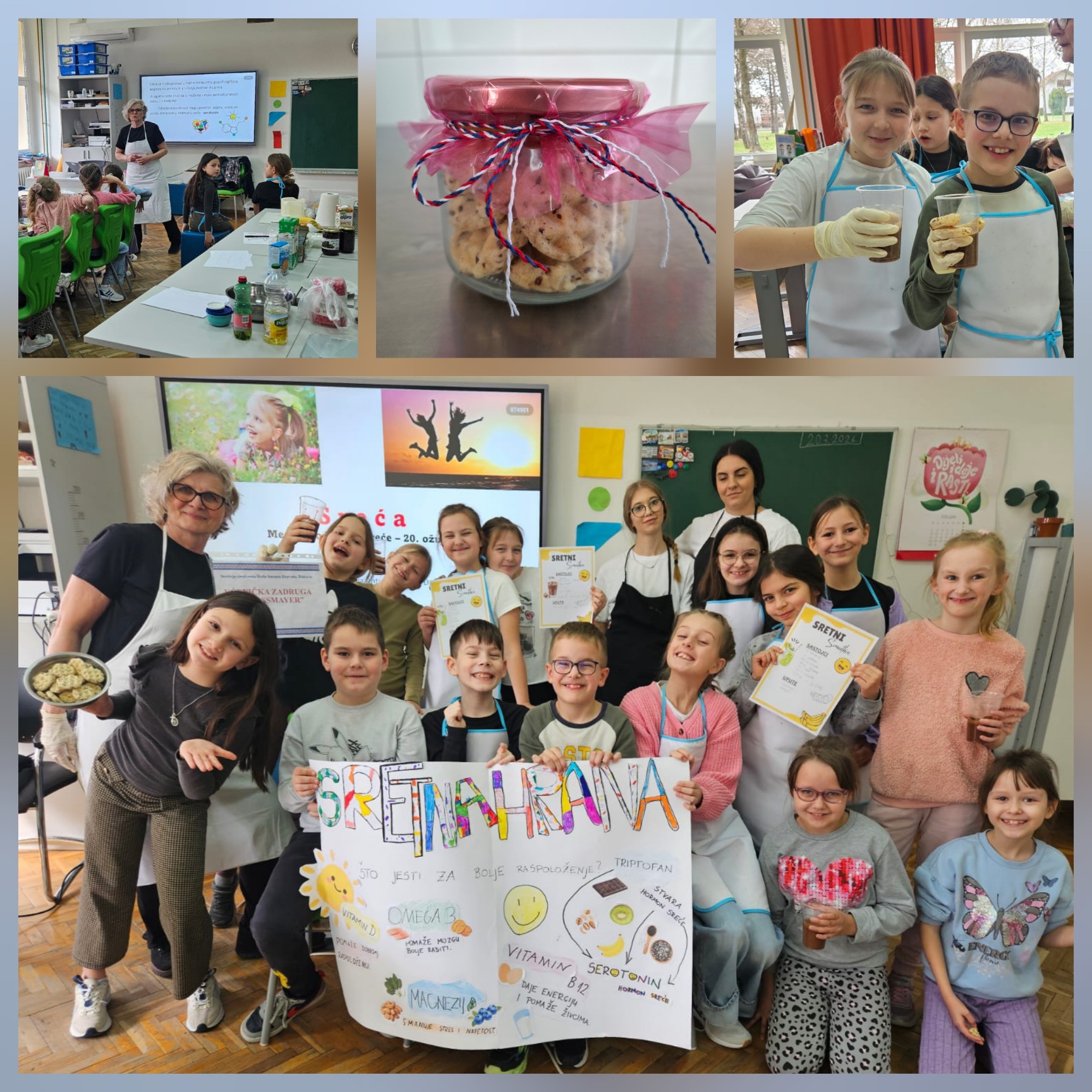 Povodom Međunarodnog dana sreće, 20. ožujka u 3. c razredu OŠ Josipa Antuna Ćolnića održali smo poučno predavanje i zanimljive radionice o namirnicama koje potiču lučenje hormona sreće te na kreativan i praktičan način učili o važnosti zdrave prehrane. Ovakvo praktično i sadržajno učenje razveselilo je učenike, potaknulo ih na suradnju i pokazalo kako se o sreći može učiti na vrlo ukusan način.