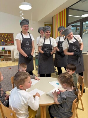 Uoči blagdana Uskrsa, 1.travnja 2026.,učenici Srednje strukovne škole Antuna Horvata Đakovo posjetili su Dječji vrtić Hlapić u Semeljcima, gdje su mališanima održali veselu i maštovitu preduskrsnu radionicu izrade slastica.