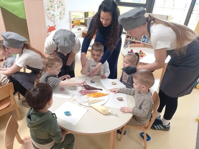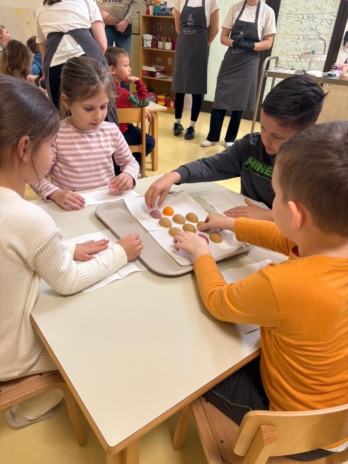 U pratnji svojih mentorica, nastavnica Marije Katilović i Nevenke Kokalović, učenici su s vrtićarcima izrađivali čokoladna jaja i različite vrste čokoladnih pralina. Posebnost ove radionice bilo je aktivno sudjelovanje djece koja su s velikim oduševljenjem sudjelovala u punjenju kremama i ukrašavanju slatkiša. Radionica je protekla u vrlo dinamičnom i radnom ozračju. Dječja graja, smijeh i veselje bili su neprocjenjivi, a najslađi dio bio je zajedničko kušanje na kraju, naravno u umjerenim količinama. Upravo takvim primjerima djecu je važno od najranije dobi učiti kako je za očuvanje zdravlja ključno razvijati pravilne prehrambene navike.