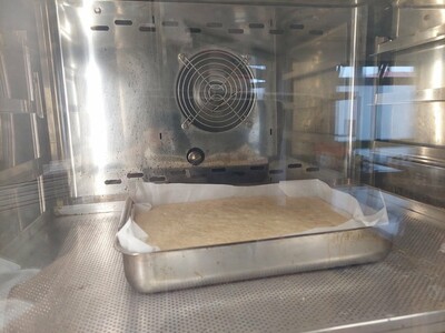 Kolač treba peći oko pola sata na temperaturi 180-200 °C. Obavezno tijekom pečenja treba provjeriti čačkalicom je li pečenje ravnomjerno ili prejako. Sočnost jabuke i veličina lima može diktirati brzinu i temperaturu pečenja.