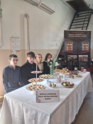 Na događanju su sudjelovali učenice slastičarke iz 2.K/S Veronika Paranos, Manda Maglica i Dora Kurtz te učenici kuhari prvog razreda 1.K/P-SL Kramarić Sebastijan, Josip Svirčev, Tamara Vugrin i Lana Živković, pod stručnim mentorstvom nastavnica Nevenke Kokalović i Marije Katilović, a sudjelovanjem na 6. Uskrsnom stolu KUD-a „Sklad” naša je škola još jednom potvrdila svoju ulogu u očuvanju i promicanju kulturne baštine Slavonije koju kroz naš rad njegujemo. Učenici su kroz praktičan rad i neposredan kontakt s tradicijom stekli dragocjeno iskustvo koje nadopunjuje njihovo strukovno obrazovanje i još jednom pokazali da su vrijedni nositelji lokalnog identiteta.