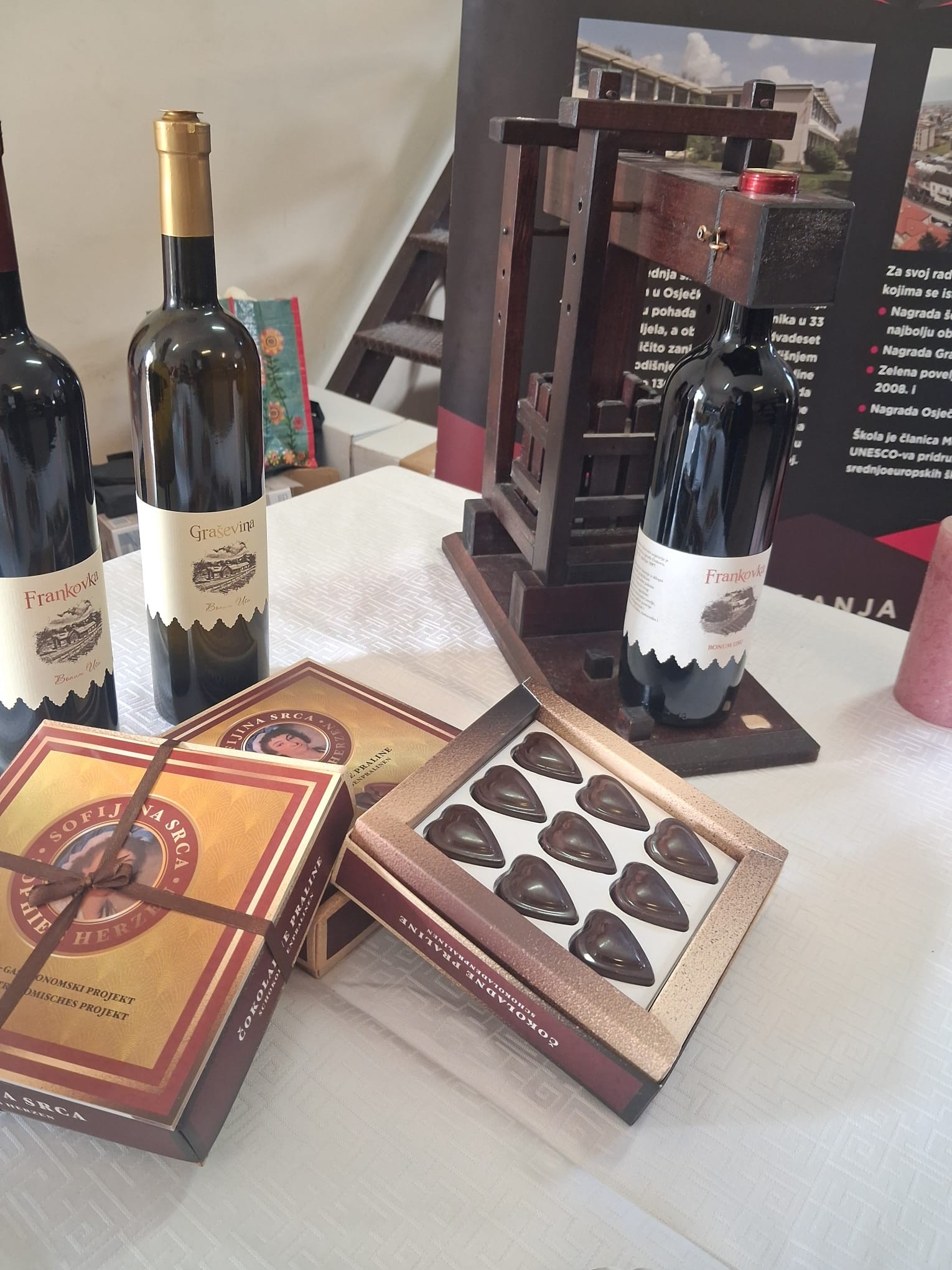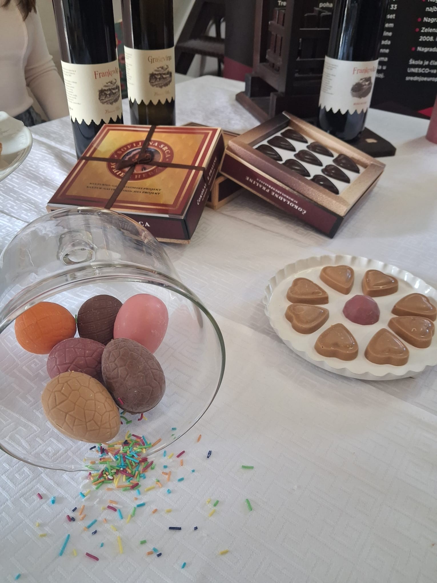 Na manifestaciji su sudjelovali i učenici i nastavnici Srednje strukovne škole Antuna Horvata. Naši su učenici izrađivali i predstavili vlastite proizvode, praline „Sofijina srca” i čokoladna jaja, koji su izazvali veliko zanimanje posjetitelja. Uz slastice, promovirali smo i naše školsko vino, koje je, kako dolikuje, upotpunilo duh ovakve manifestacije.