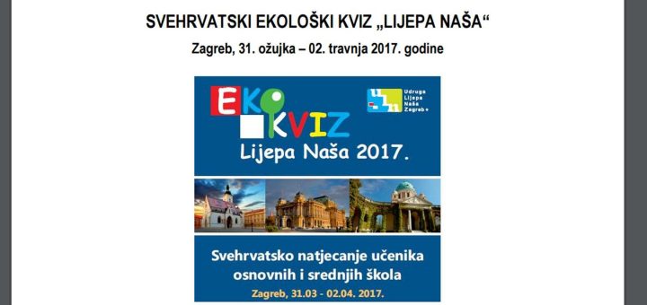 U organizaciji Udruge “Lijepa Naša” u Zagrebu je od 31. ožujka do 2. travnja 2017. održano Državno i svehrvatsko natjecanje Ekološki kviz...